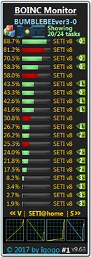 BOINC Monitor a desktop gadget that shows the status of running tasks. You can add new BOINC projects in XML list file for customize gadget. Color changeable for all gadget's elements, including the background color.