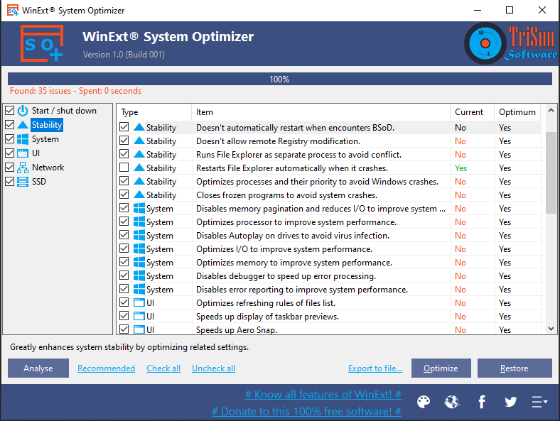 WinExt System Optimizer is an application that lives up to its title: it packs several options that are meant to help you improve the performance, speed and stability of your computer.