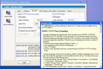 Tunnelier is a SSH client with dynamic and manual TCP/IP tunneling; auto-reconnect features; a graphical SFTP file transfer client and scriptable console-mode SFTP support; an FTP-to-SFTP protocol bridge; support for single-click Remote Desktop forwarding for graphical server access; and support for vt100, xterm and bvterm terminal consoles.