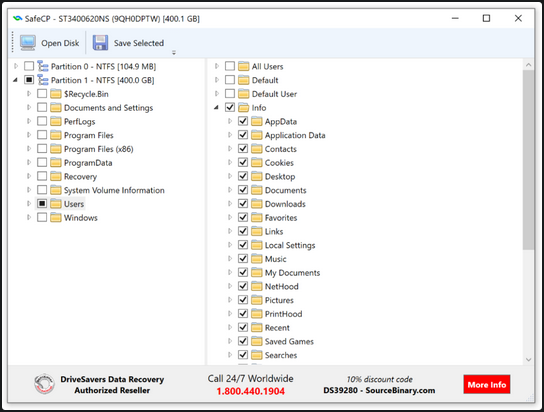 SafeCP is a cross-platform tool that utilizes raw disk access to read all common filesystems and then recover user profile folders from externally connected disks.