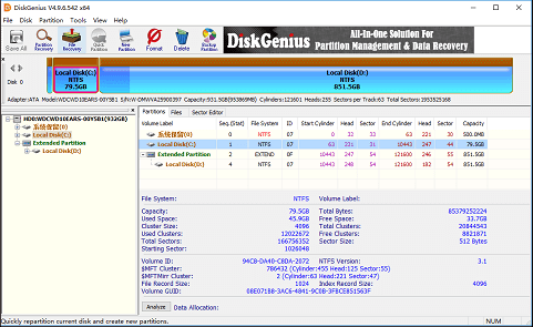 DiskGenius is an all in one tool for managing partitions along with data recovery, as well as backup and restore functions.