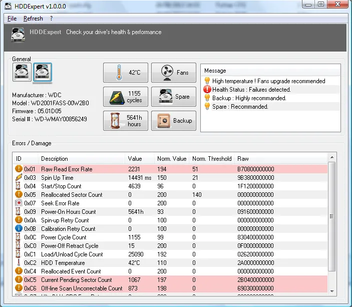 HDDExpert gives you a crystal-clear vision of your Hard Drive (HDD or SSD) health and performance and translates S.M.A.R.T. attributes into a readable indication. It then recommends maintenance (fans upgrade, spare purchase, backups and more) depending on the amount of failures detected on your hard drives.