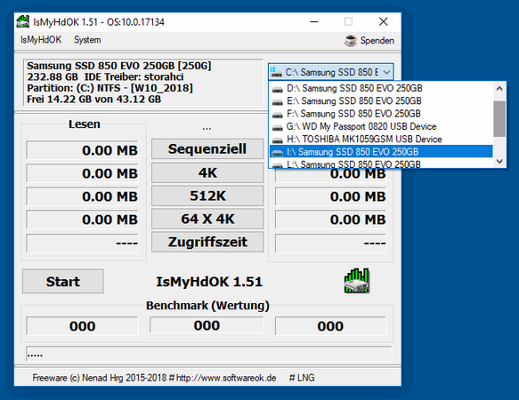 Es können SSD, DF, SD-Karten, USB-Sticks und weitere Datenträger getestet werden! Mit IsMyHdOK können Sie auf einfache, aber sehr schnelle Art überprüfen, ob ihre Festplatte noch immer die selben Werte hat.