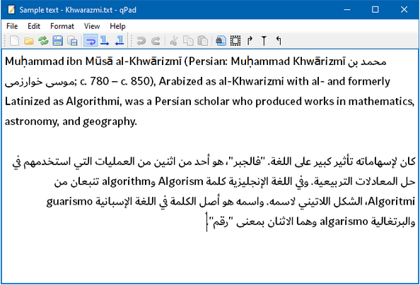 BabelPad is a free Unicode text editor and word processor for Windows that supports the proper rendering of most complex scripts, and allows you to assign different fonts to different scripts in order to facilitate multi-script text editing.