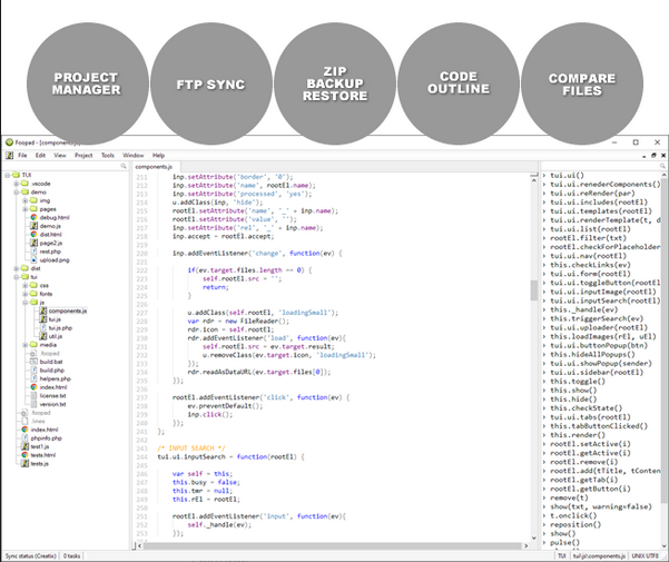 PSPad is a universal freeware editor. There is no complex install process; the program is ready to work immediately, without requiring customization. It supports many file types and languages, with syntax highlighting. There are macros, clip files and templates to automate repetitive activities. An integrated HEX Editor, Project support, FTP Client, Macro Recorder, File Search/Replace, Code Explorer, code page conversion, are just some of the many possibilities that PSPad can offer you.