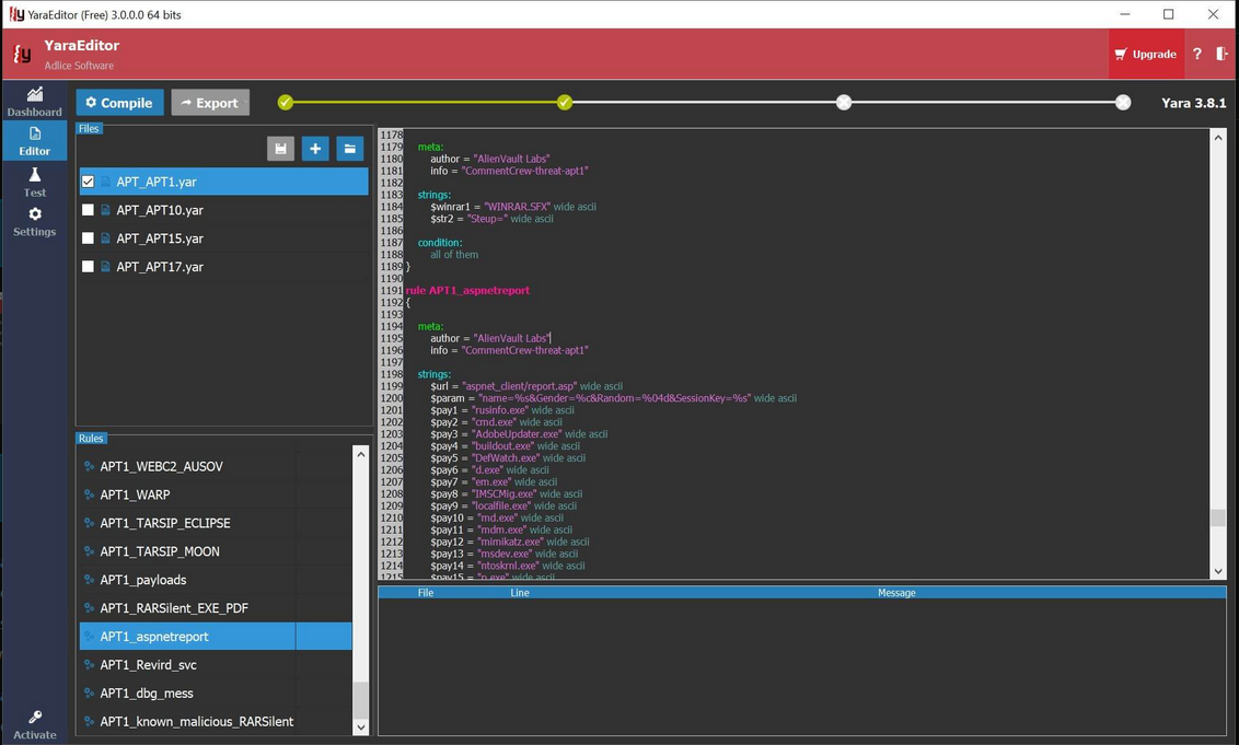 Write, compile and test signatures for the Yara tool and determine whether they are compiled correctly to identify malware using this straightforward app.