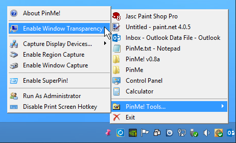 PinMe! is a portable free tool which makes it easy to set a window as "always on top" - to always stay in the foreground, above any others.
