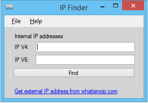 IP Finder is an efficient app that instantaneously locates and displays your internal/external IPs. IP Finder is extremely simple to use; unpack, run and then hit find. It then provides you with complete IPv4 and IPv6.