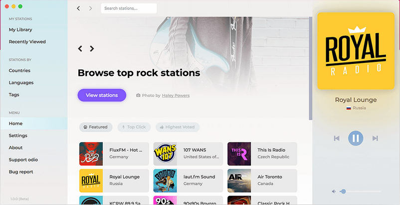Elegant and easy-to-use radio streaming tool with over 20,000 radio channels from all over the world, featuring filters and library of favorites.